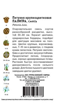 Очаровательная, смесь сортов разнообразной расцветки высотой до 30-40 см. Украсит цветники, среднерослые бордюры, подойдет для цветущих массивов на газонах. Цветки крупные, воронковидные, до 7-10 см в диаметре, с гладким краем лепестков. Петуния светолюбива и достаточно засухоустойчива. Предпочитает легкие, плодородные, хорошо дренированные почвы. Растения быстро восстанавливают декоративность после сильного дождя. Для более пышного цветения завядшие цветки удаляют.