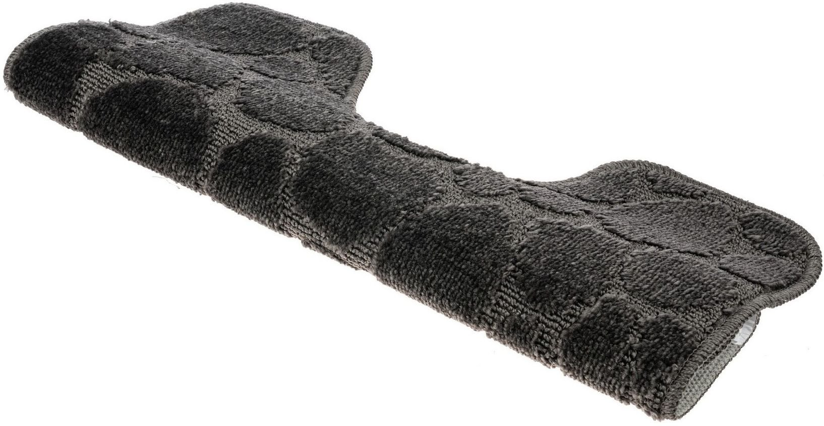 Элегантный и практичный аксессуар для санузла в любом стиле дизайна. Стойкий, прочный полипропилен моментально сохнет, на нем не скапливается грязь, не остаются стойкие пятна. Коврики для ваннойудобны и практичны: • не скользят, прочно держатся на полу, покрытом линолеумом, кафельной плиткой, керамогранитом; • материал гипоаллергенен без резкого запаха; • под ковриком не распространяется грибок и плесень, так как он моментально высыхает; • не теряет яркость цвета при частых стирках; • прост в уходе – допускается машинная и ручная стирка при 30 градусах; • материал прочный, стойкий к износу, долговечный; • доступная стоимость. Стильный дизайн в насыщенном черном цвете контрастно сочетается с оформлением в разной палитре цветов и оттенков. Лаконичное тиснение в форме брусчатки приятно пружинит, смотрится экстравагантно и стильно.