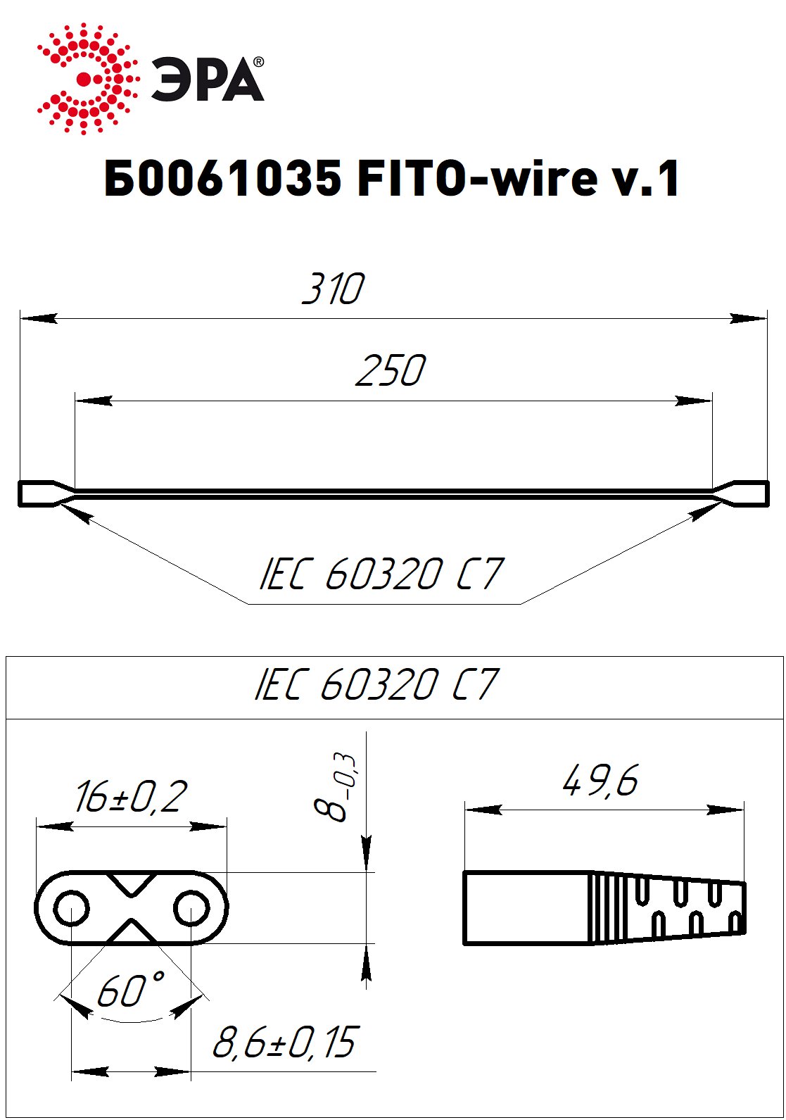 - Кабель соединительный для фитолампы ЭРА FITO-wire 0.25м IEC C7-IEC C7
