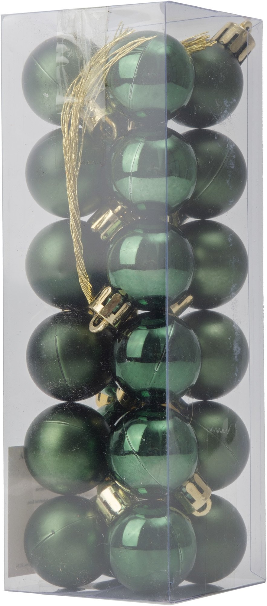 Встречайте Новый год ярко и стильно с нашим уникальным набором новогодних шаров! В комплекте вы найдёте 24 стильных и ярких шара размером 3 см, выполненных в зелёном цвете с глянцевой и матовой поверхностью.