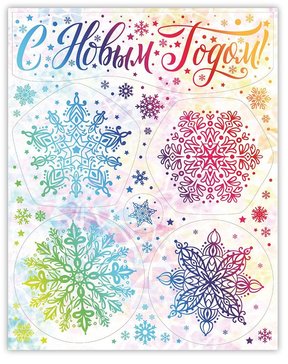 - Украшение новогоднее оконное Magic Time С Новым Годом! Снежинки с раскраской 30x38см арт.92070