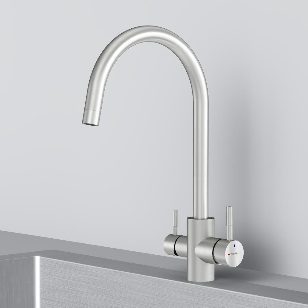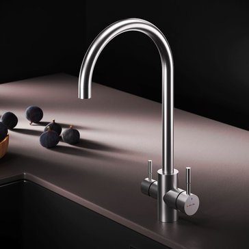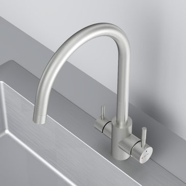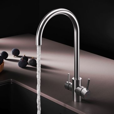 Встречайте пополнение экстраординарной коллекции X-Joy S – кухонные смесители с каналом для питьевой воды и функцией EcoStart. Эргономичный дизайн продуктов был разработан собственной дизайн-студией AM.PM в Германии. Смеситель оснащен встроенным каналом для питьевой воды. Для получения питьевой воды воспользуйтесь ручкой расположенной с левой стороны корпуса для получения обычной воды просто управляйте смесителем привычным способом. Функция EcoStart —стильное и экологичное решение для вашего дома. При включении смесителя в центральном положении автоматически потечет холодная вода. Для включения горячей воды – необходимо повернуть ручку влево. Поворот ручки вправо заблокирован. Оптимизация диапазона действия ручки смесителя сокращает нерациональный расход воды до 40% в месяц. EcoStart сочетает удобство использования с экономией ресурсов заботясь не только о вашем бюджете но и об окружающей среде. Эксклюзивное покрытие Everlast – вдвое превышает отраслевые стандарты по прочности и износостойкости. Сатиновый цвет сделает этот смеситель главным акцентом в любом интерьере.
