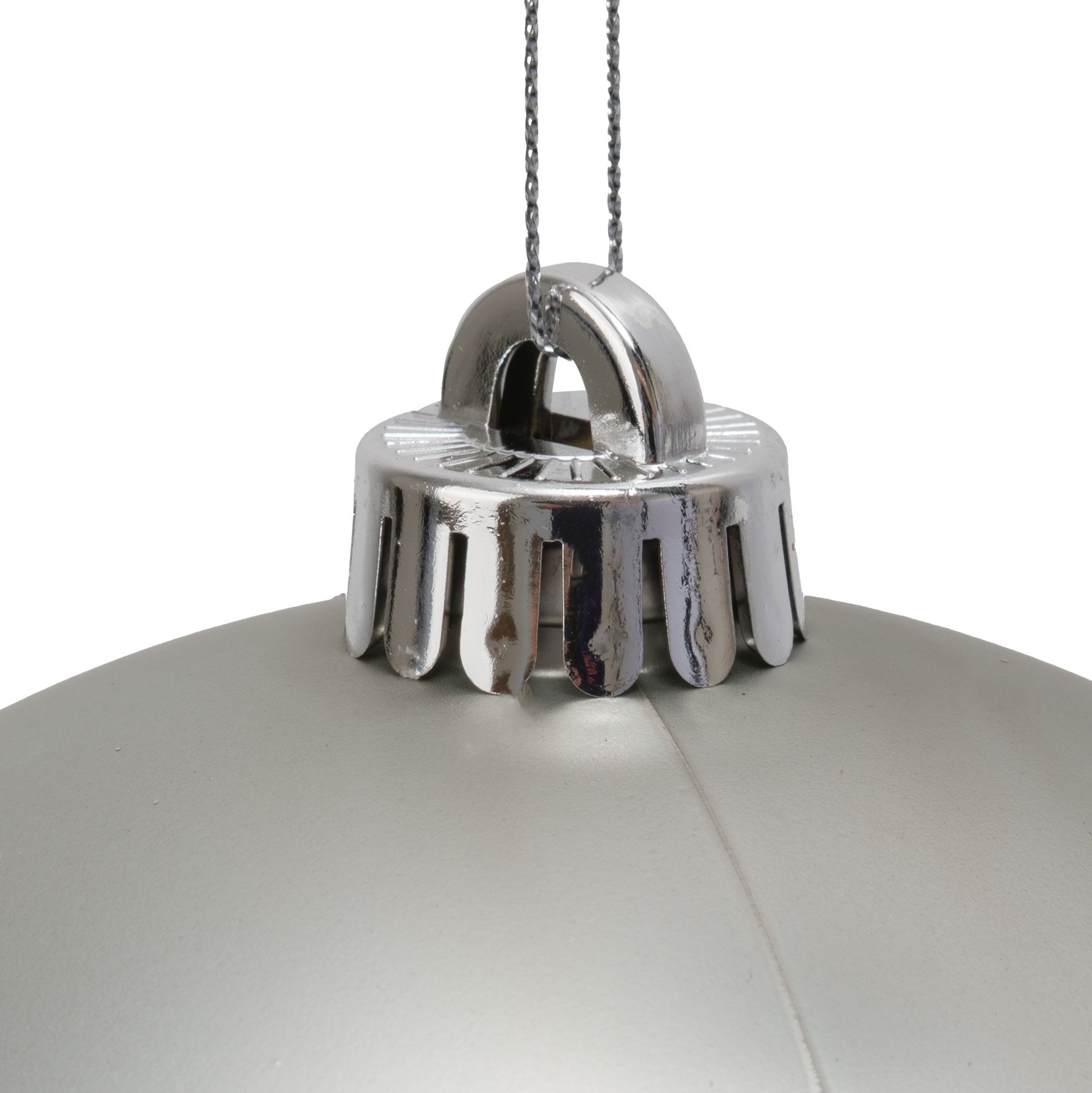 Преимущества нашего шара: Идеальный размер – 15 см, прекрасно заметен с любого расстояния Надёжное покрытие – матовая поверхность устойчива к погодным условиям Прочный материал – выдерживает любые осадки и перепады температур Серебряный цвет – создаёт праздничное настроение и привлекает внимание Универсальность – подходит для любых уличных ёлок и декоративных деревьев Долговечность – сохраняет привлекательный вид на протяжении всего сезона