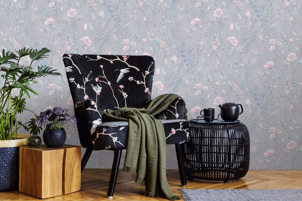 Коллекция обоев «Meadow», название которой переводится как «луг», вдохновлена красотой цветущих полей, где каждая травинка и каждый цветок создают гармоничный природный узор. На обоях изображены тонкие стебли, листья и изящные бутоны розового клевера, душистого донника, благородного ириса и нежной лаванды. Они создают детализированный узор, который будто дышит под дуновением легкого ветра.