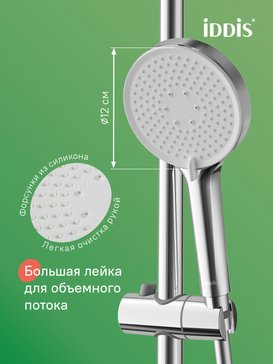 Лейка для душа IDDIS Optima Home OPH3FC0i18 — это хромированная модель с тремя режимами работы (Rain, Mist, Rain&Mist), предназначенная для комплектации смесителей и душевых аксессуаров. Её увеличенный диаметр (122 мм) и нейтральный дизайн позволяют гармонично вписать лейку в любой интерьер. Мягкие силиконовые форсунки легко очищаются от известкового налёта, а гальваническое покрытие устойчиво к коррозии и потускнению. Гарантия на изделие составляет 3 года. Лейка имеет увеличенный диаметр (122 мм) и 3 режима работы (Rain, Mist, Rain&Mist), что даёт возможность подбирать режим под любое настроение: и для бодрящего утра, и для расслабляющего вечера. Хромированное покрытие устойчиво к коррозии, появлению сколов и потускнению (при должном уходе). На протяжении многих лет она будет выглядеть как новая. Лейка проста в уходе: мягкие силиконовые форсунки легко очищаются от загрязнений и известкового налета – достаточно провести по ним пальцем. Гарантия на душевые аксессуары IDDIS® – 3 года.