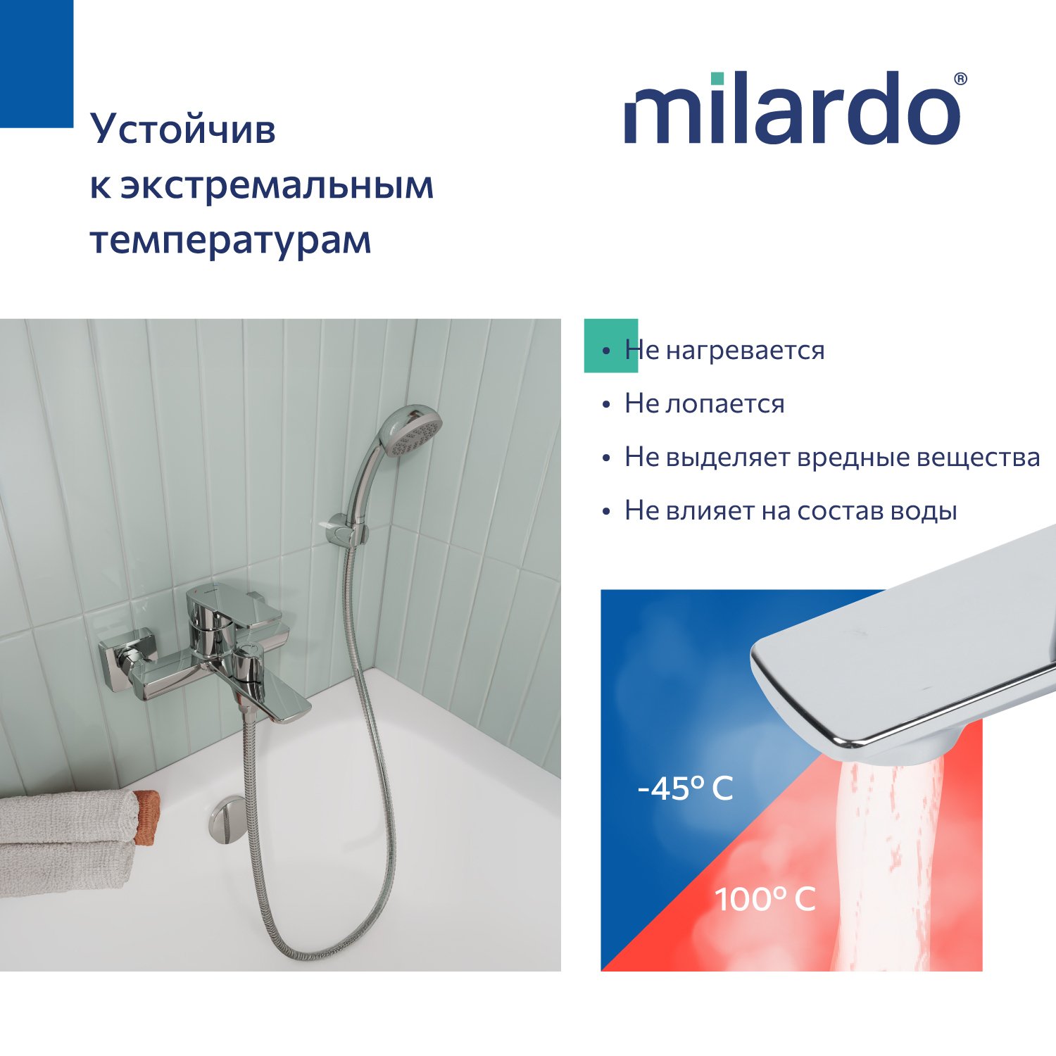Высокая ударопрочность сохраняется даже при экстремально низких температурах, что помогает подготовиться к дачному сезону в любых условиях или избежать протечек при отключении горячего водоснабжения в квартире.