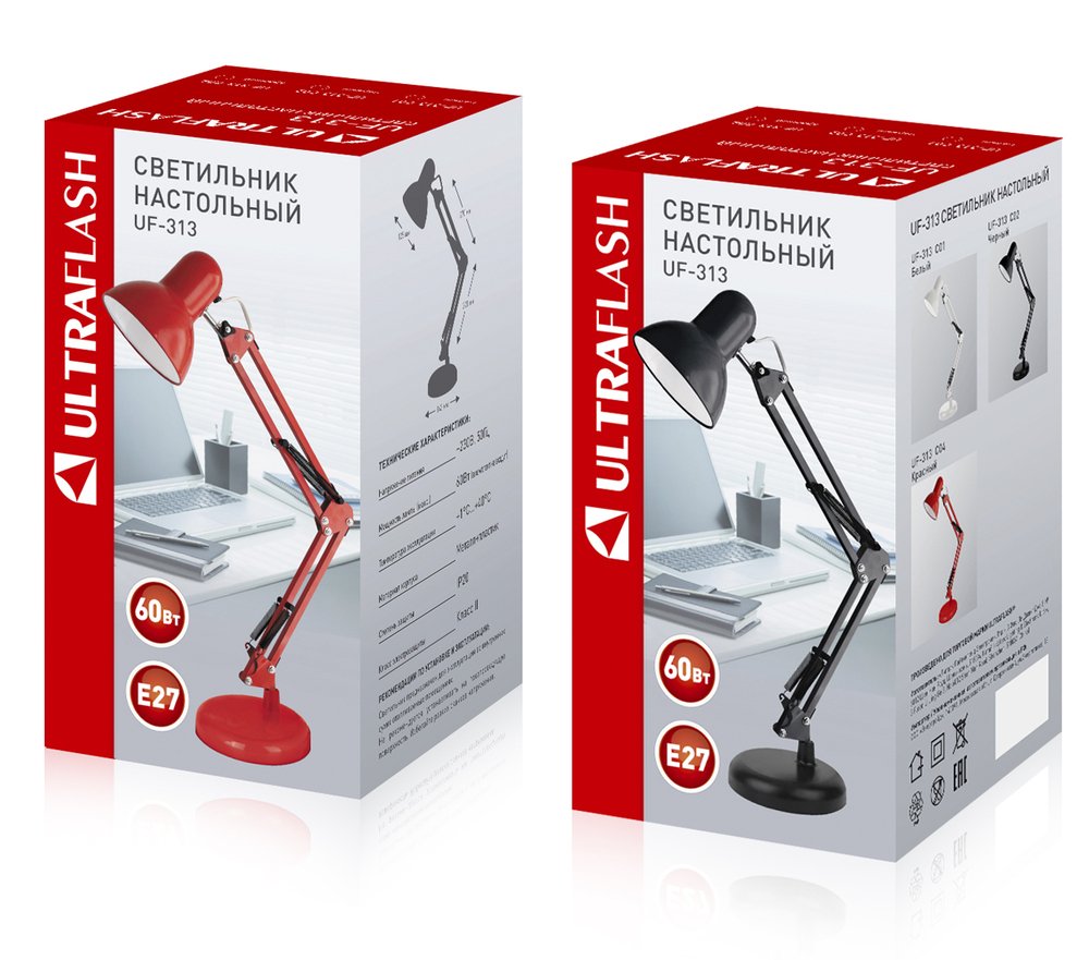 - Светильник настольный Ultraflash UF-313 С01 белый 230В, 60Вт, E27