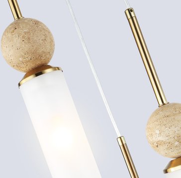 Модель LH53257 представлена в современном стиле модерн. Светильник выполнен из металла в цвете латунь со стеклнным белым матовым плафоном, а также украшен мрамором песочного цвета. Имеет три цоколя Е14.