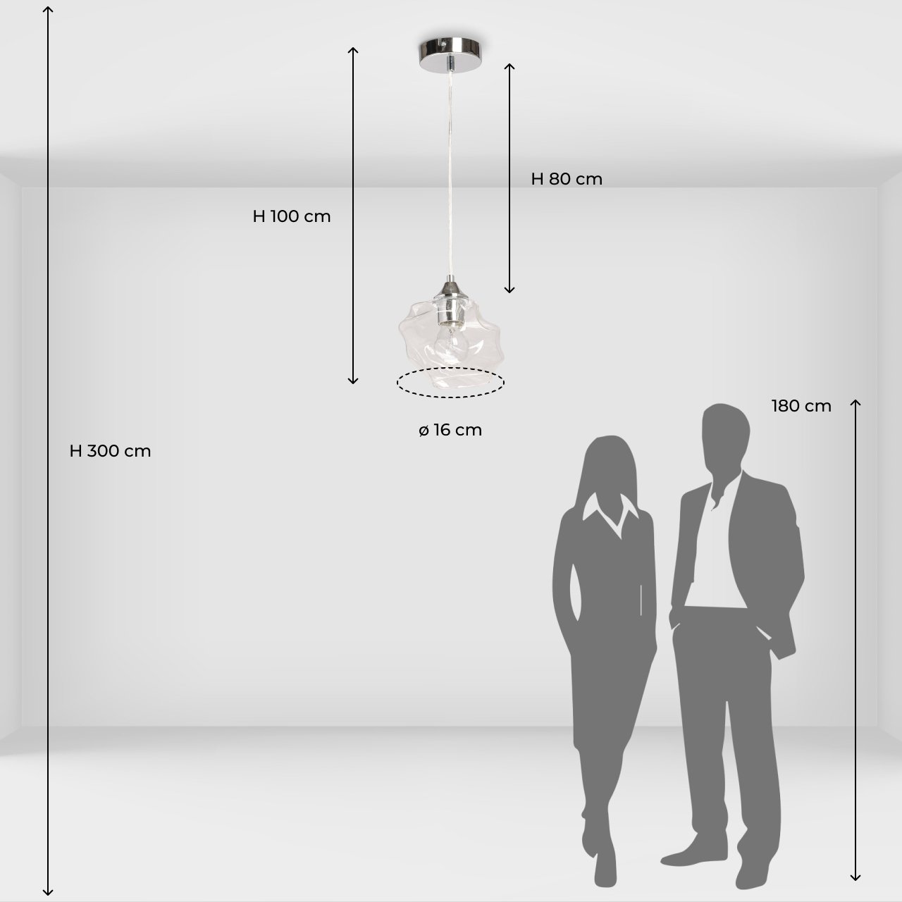 Подвес формирует мягкий, рассеянный свет за счёт прозрачности стекла, что создаёт уютную атмосферу без резких теней. Компактные габариты и нейтральный дизайн позволяют использовать его в разных зонах: на кухне, в прихожей, спальне или рабочем уголке.