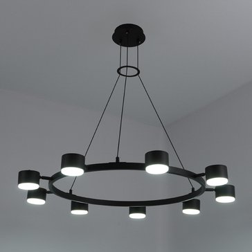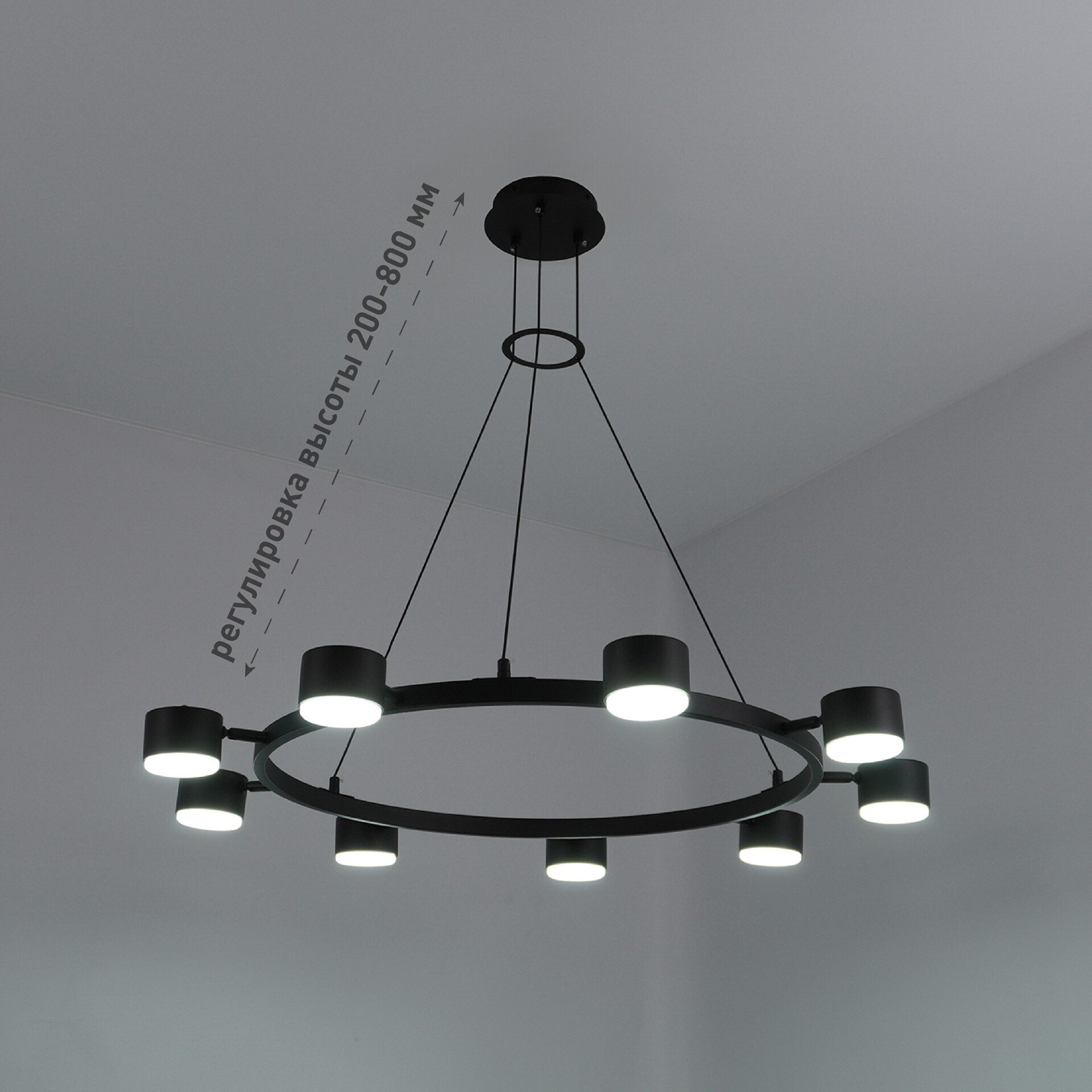 Люстра LAMPADA 9xGX53-870x800-BLACK-220-IP20 — стильное подвесное осветительное устройство в лаконичном чёрном дизайне. Модель оснащена 9 патронами под лампы типа GX53, что обеспечивает равномерное и яркое освещение. Габариты люстры внушительны: длина — 87 см, ширина — 80 см, что делает её отличным выбором для просторных помещений — гостиных, холлов, ресторанов. Дизайн выполнен в современном минималистичном стиле: строгая чёрная арматура подчёркивает элегантность и универсальность модели. Благодаря цветовому решению люстра органично впишется в интерьер в стиле лофт, хай-тек или модерн. Работает от стандартной сети 220 В. Степень защиты IP20 говорит о том, что устройство предназначено для использования в сухих помещениях — защита от влаги отсутствует. Компактность конструкции при больших размерах позволяет экономить пространство, а подвесная система крепления обеспечивает лёгкую установку. Отличный вариант для создания акцентного освещения с современным характером.
