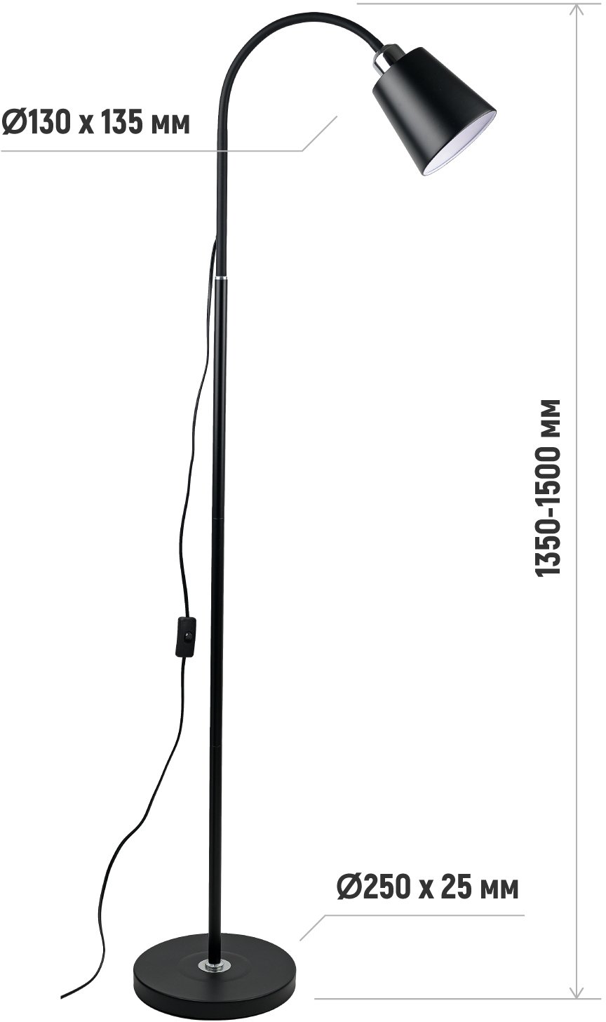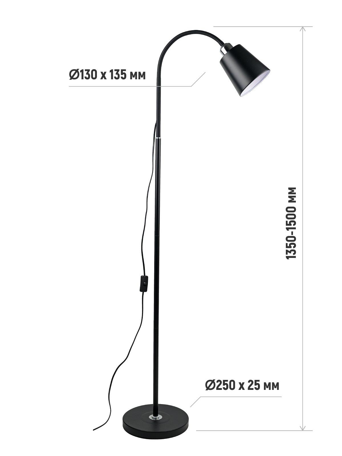 Светильник напольный Е27 HT-140B черный, высота 1550мм