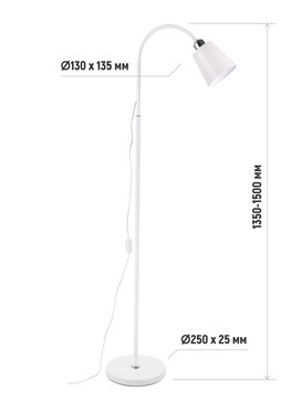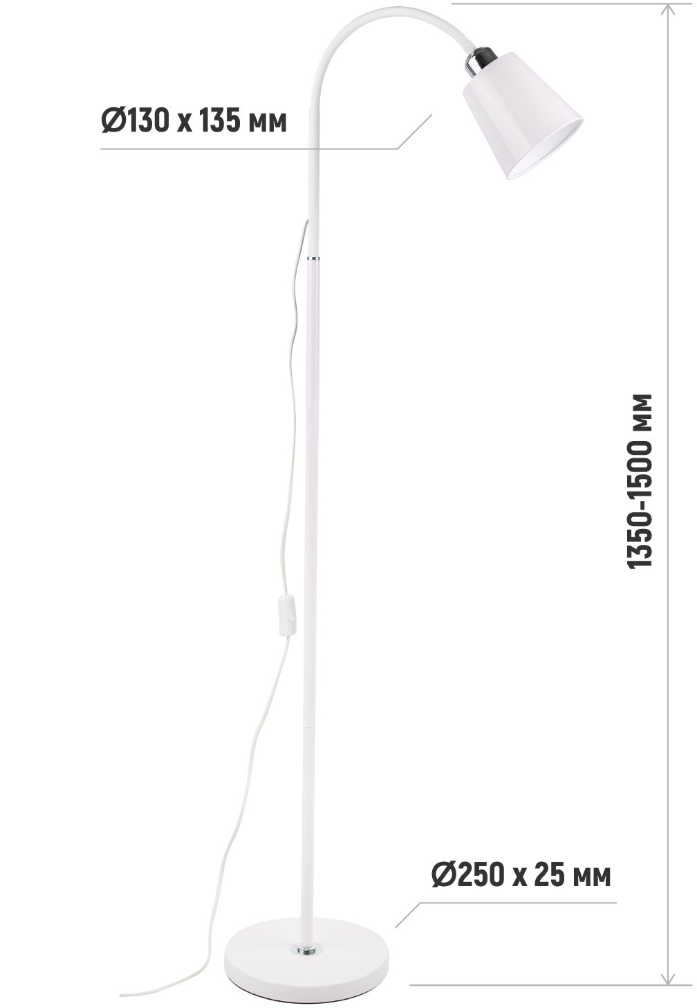 Напольный светильник ARTSTYLE HT‑140W (белый, высота 1550 мм) — модель в стиле неоклассика с цоколем E27 и максимальной мощностью лампы 60 Вт; оснащён ручным выключателем, имеет металлический каркас и плафон конической формы, длину шнура 180 см и степень защиты IP20; подходит для гостиной, спальни или кабинета.
