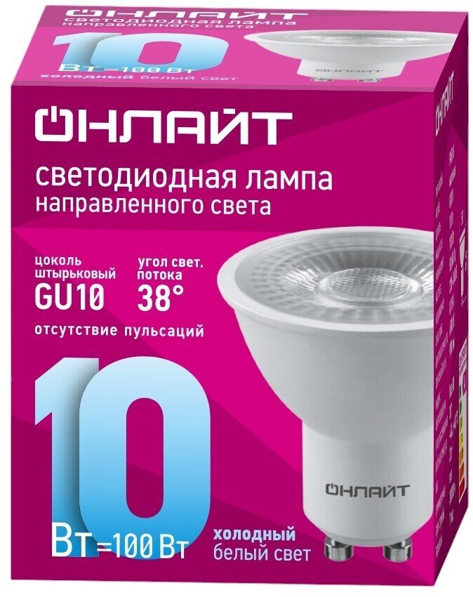 - Лампа светодиодная 10Вт GU10 6500К Онлайт призма