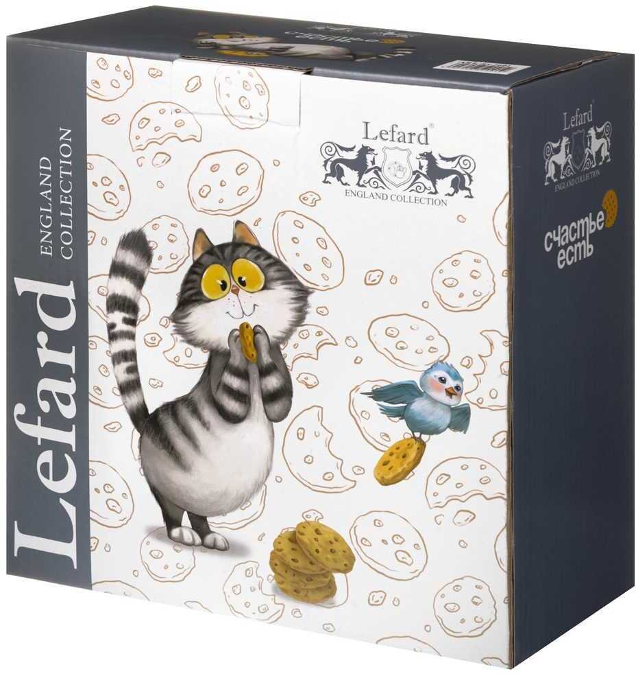 Всем, кто полон энергии и задора, любит кофе и следит за фигурой посвящается коллекция «Счастье есть» от ТМ LEFARD. Это лучший подарок детям, родителям, друзьям и коллегам. Поднимайте настроение вместе с веселым котиком, верьте, Счастье есть! Кружки, наборы посуды, салатники, закусочные и обеденные тарелки выполнены из высококачественного фарфора. Удобные формы и размеры. Красочная упаковка. Продукция прошла сертификацию, безопасна для контакта с пищевыми продуктами. Можно использовать в микроволновой печи, мыть в посудомоечной машине.