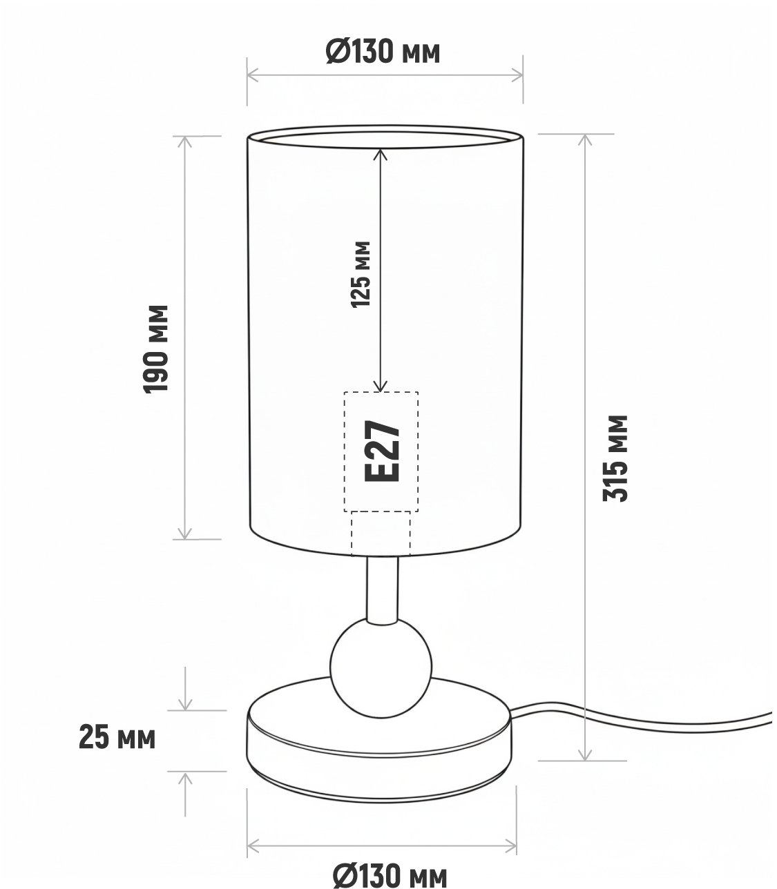 выключатель на проводе (длина провода от основания до выключателя около 30см);
