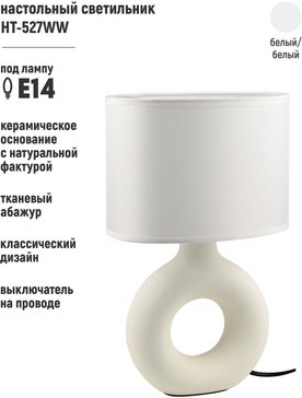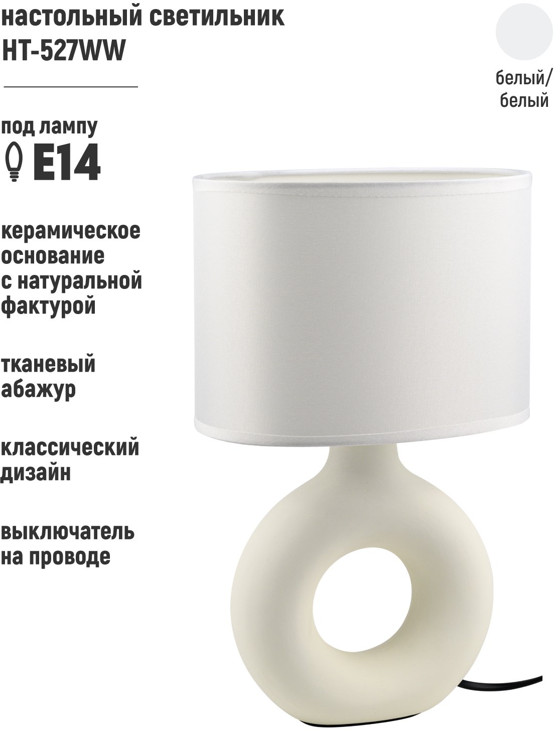- Светильник настольный ARTSTYLE HT-527WW E14 белый/белый, керам./ткань