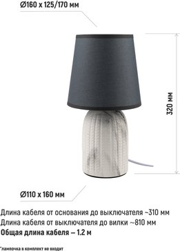 - Светильник настольный ARTSTYLE HT-529WGY E14 белый/серый, керам./ткань